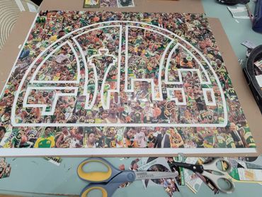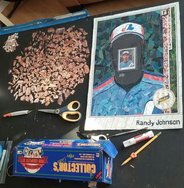 Cutting Cards creating collages using cut-up sports cards